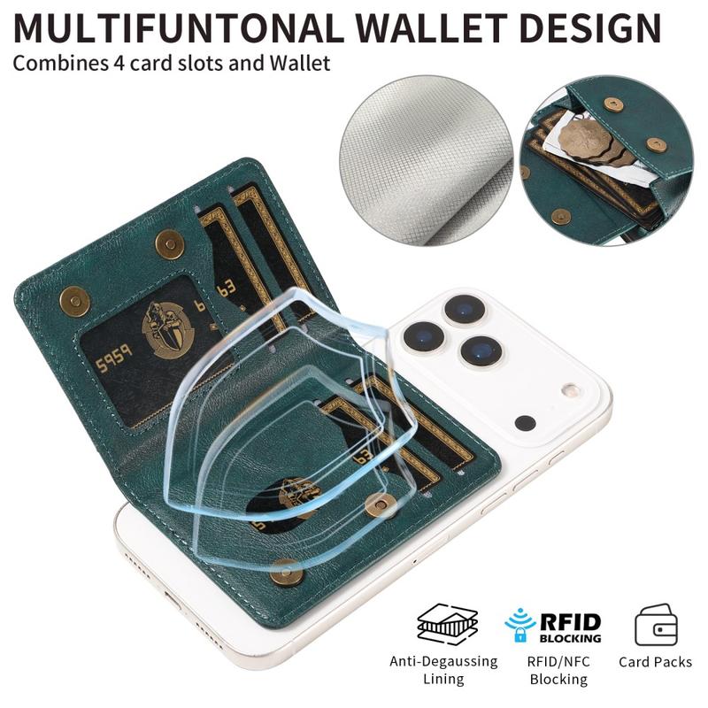 Detachable MagSafe Card Holder / RFID Blocking Wallet with 4 Card Slots & Stand Function