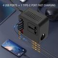 Digital Display Car Power Inverter - 12V/24V DC to 110V/220V AC Converter with USB-C, USB-A, and AC Outlet 150W