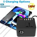 - Multi-Port Charging Hub - Features 1× USB-C PD (20W), 4× USB-A QC (20W each), and 1× universal AC outlet, allowing simultaneous charging for phones, tablets, laptops, and small electronics.