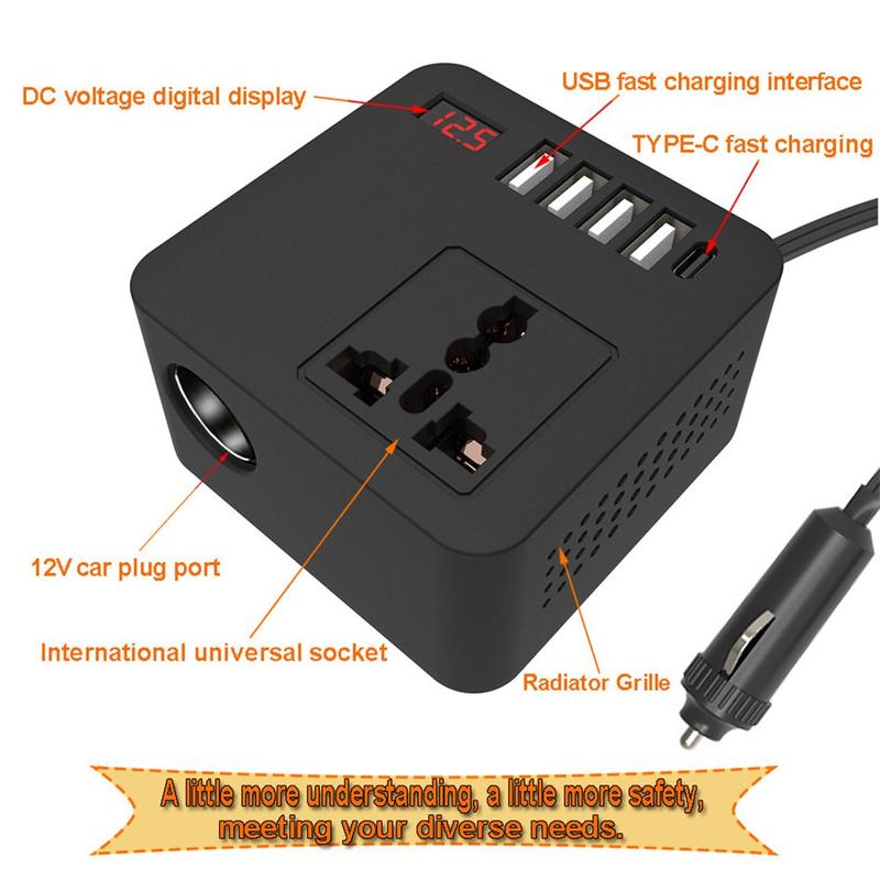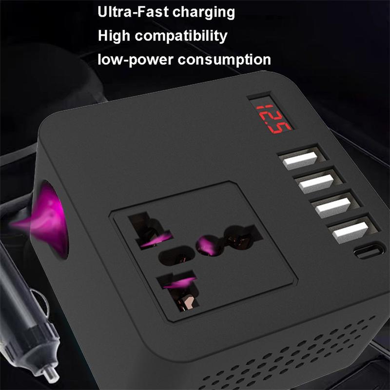 The Digital Display Car Power Inverter offers multi-device fast charging, intelligent cooling, and safety assurance in a compact form factor. Whether you’re commuting or camping off-grid, it’s your all-in-one portable power station.