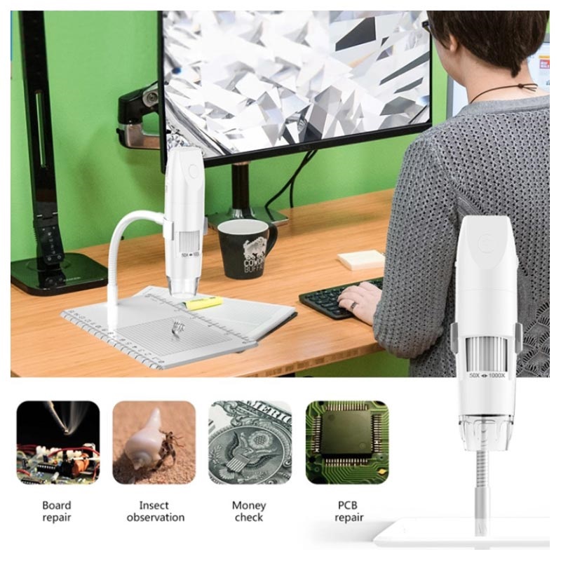 Osm nastavitelných LED světel poskytuje optimální čistotu, zatímco 2MP kamera umožňuje podrobné pozorování 3D vzorků, jako jsou hmyz, mince nebo šperky. Užijte si každý detail díky zvětšení zvětšení 50x až 1000x. Připojte tento digitální mikroskop pomocí WiFi k zařízení Android nebo iOS nebo s počítačem Windows nebo Mac. Pokud není k dispozici připojení WiFi, můžete pomocí kabelu MicRUSB spárovat tento gadget na zařízení s podporou USB.