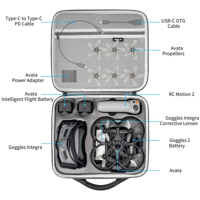 This carrying case combines functionality with elegance, offering a reliable solution for transporting and storing your DJI Avata drone and its accessories. Its custom design ensures a perfect fit, while the premium materials and thoughtful features provide durability and convenience.
