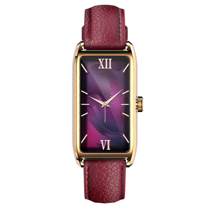 Inspired by modern watchmaking, the Dora T features a square case with smooth, rounded edges and delicate horizontal lines that exude mechanical precision and sophistication. Its super-fiber leather strap with a stainless-steel buckle ensures a soft, comfortable fit on any wrist.