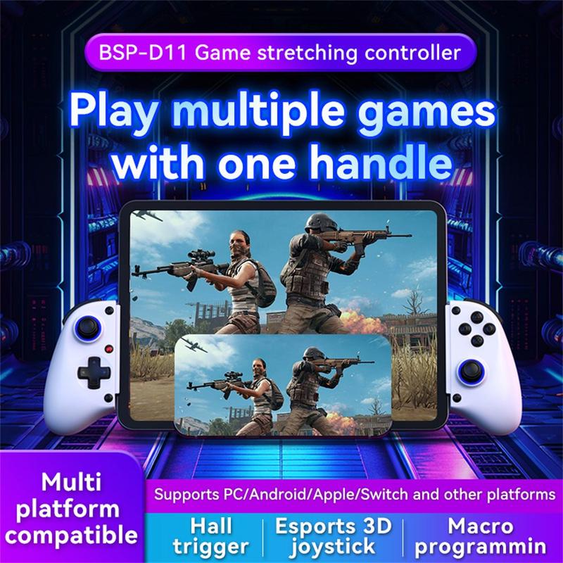 Experience seamless gaming with the DSP-D11 Bluetooth stretchable game controller. Compatible with Nintendo Switch, iOS, and Android devices, this wireless gamepad provides responsive controls and ergonomic design for extended gaming sessions. The stretchable build allows compatibility with various phone sizes, making it ideal for on-the-go gamers.
