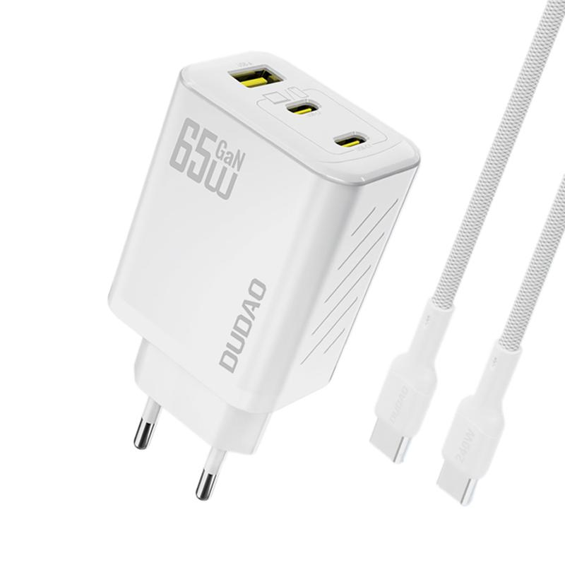 Dudao A29C 65W GaN Wall Charger - 3-Port Fast Charger (2× USB-C + USB-A) with 1 m USB-C to USB-C Cable, PD & QC Support