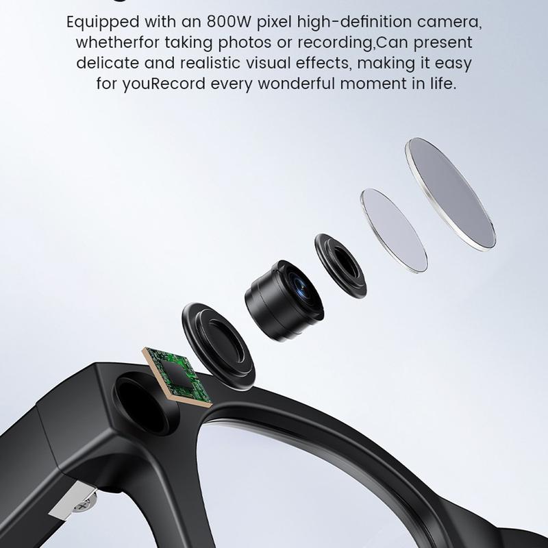 Smart eyewear like the E02 uses AI image recognition and real-time translation to bridge communication gaps instantly. Its dual role as both camera glasses and wireless audio device makes it a futuristic all-in-one gadget for both productivity and leisure.