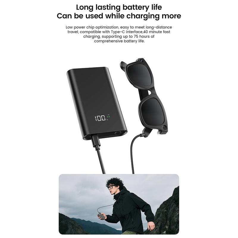- Long Battery Life - 320mAh battery with Type-C fast charging; up to 75h standby, 10h music, 3h continuous recording.
