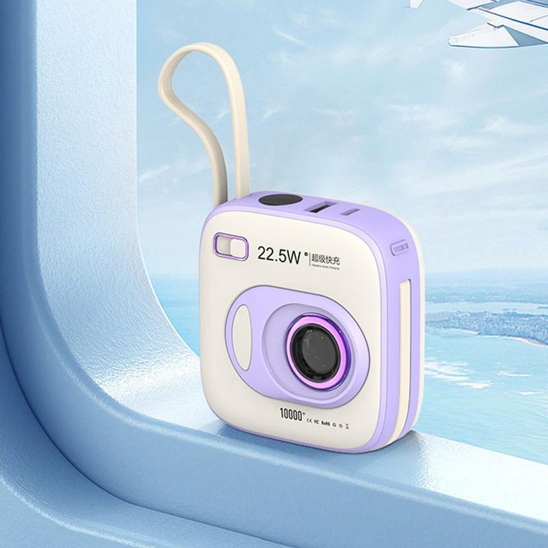 E52 10000mAh Mini Cabled Power Bank Camera-Shape Portable Phone Charger External Battery Pack - Purple