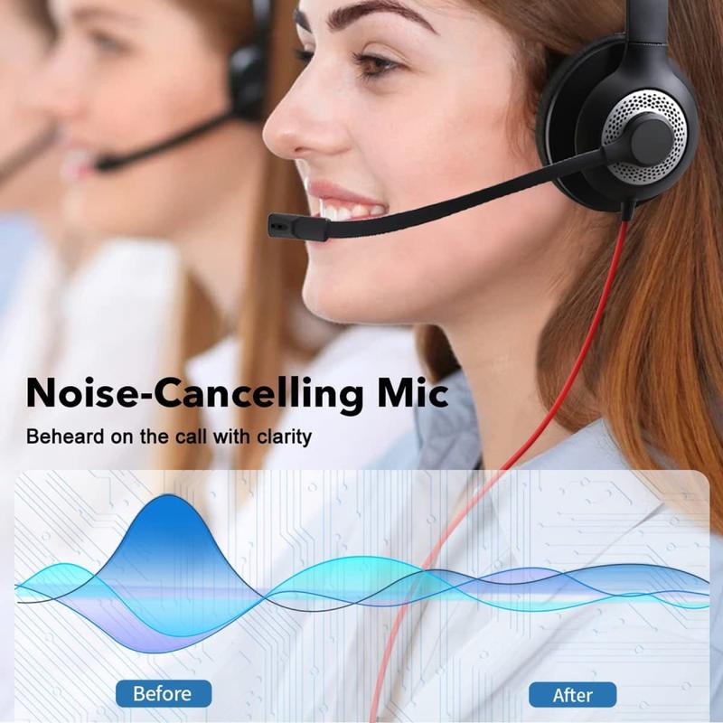 Eaglend EH01 USB & 3.5mm Wired Computer Headset with Noise-Cancelling Microphone for Customer Support Service