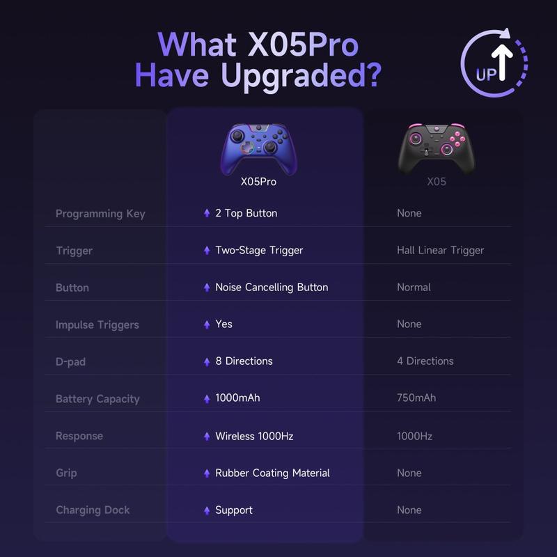 The Hall effect joysticks use magnetic sensors instead of physical contact, eliminating wear and drift — a feature often reserved for high-end professional controllers, now available in the X05Pro for long-term precision and durability.