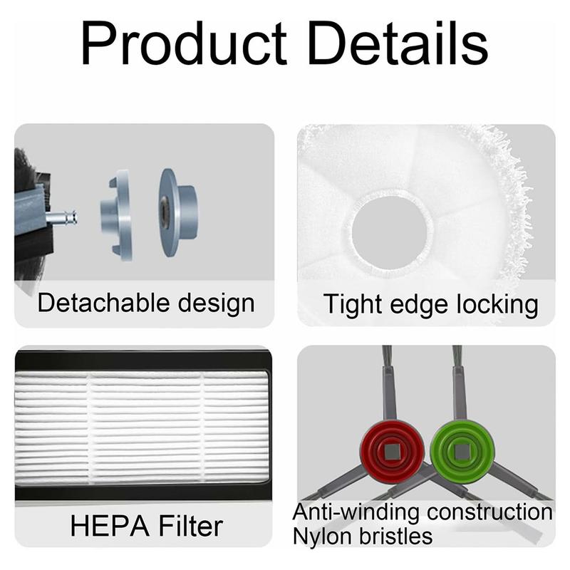 - Comprehensive 17-piece kit: Includes all essential replacement parts—main brush, side brushes, filters, dust bags, and mop cloths.