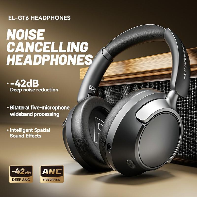 EL-GT6 Over-Ear ANC Wireless Headphones / Gaming Headset with Bluetooth 6.0, HiFi Sound, Low Latency