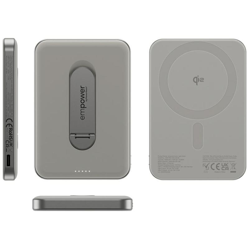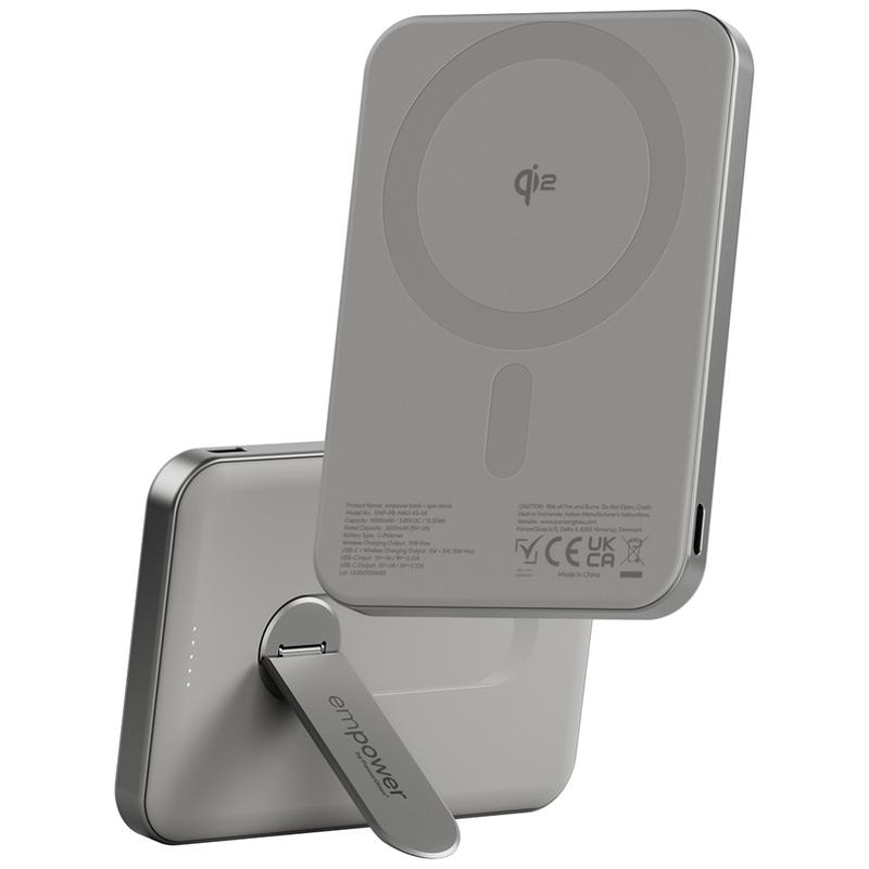 Empower by PanzerGlass Magnetic Wireless Power Bank with Spin Stand - 5000mAh Qi2 & MagSafe-Compatible Power Bank