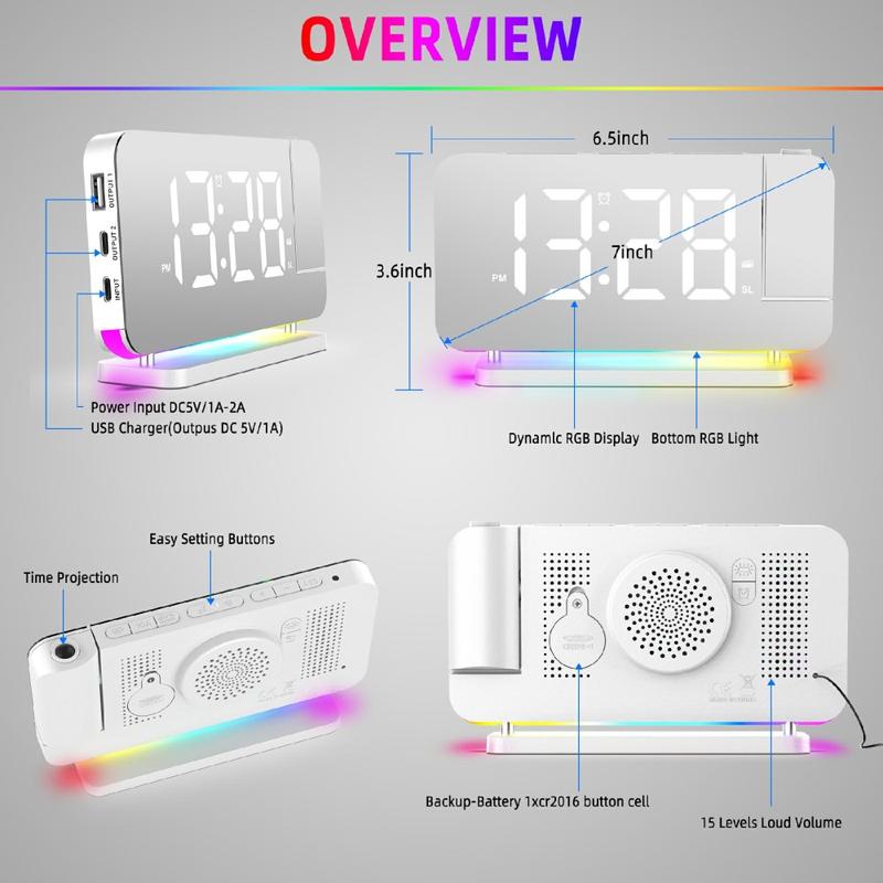 - Projection Function: Projects time onto the ceiling, adjustable up to 5 meters with 360° rotation and 180° tilt, offering convenience at a glance.