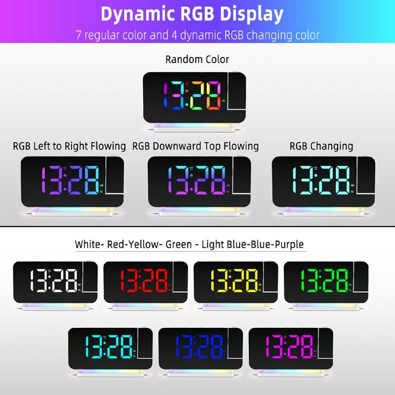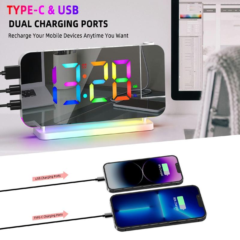 EN8853-C Colorful Time Projection LED Alarm Clock with FM Radio - 76-108MHz, USB and Type-C output