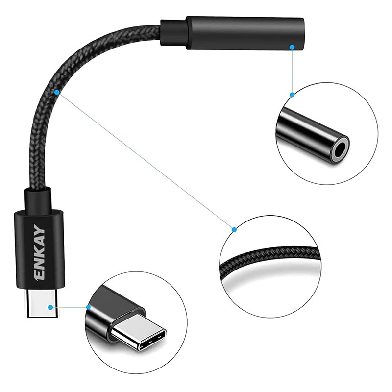Tento adaptér Enkay umožňuje připojení mezi portem USB-C a 3,5 mm audio kabelem AUX. Poskytuje stabilní přenos a umožňuje odpovídat na telefonní hovory pomocí sluchátek.