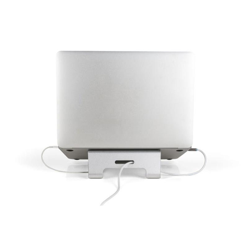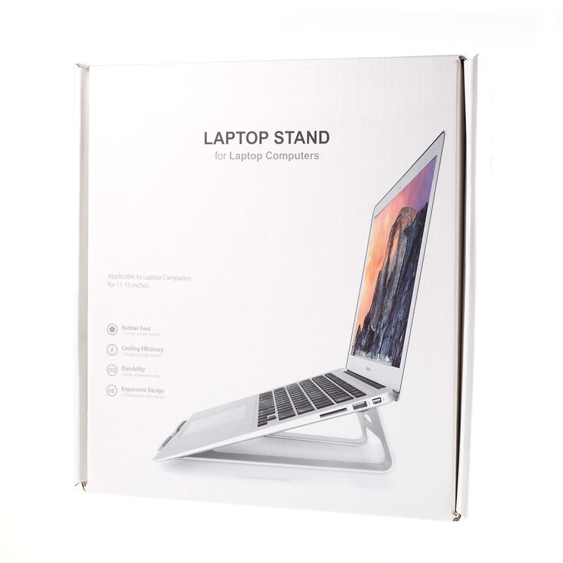 This laptop stand helps to lift your laptop screen to a comfortable angle for viewing and typing to reduce cervical spine fatigue. Hollow design accelerates air ventilation to dissipate heat effectively. Crafted from aluminum alloy material, it is solid and durable.