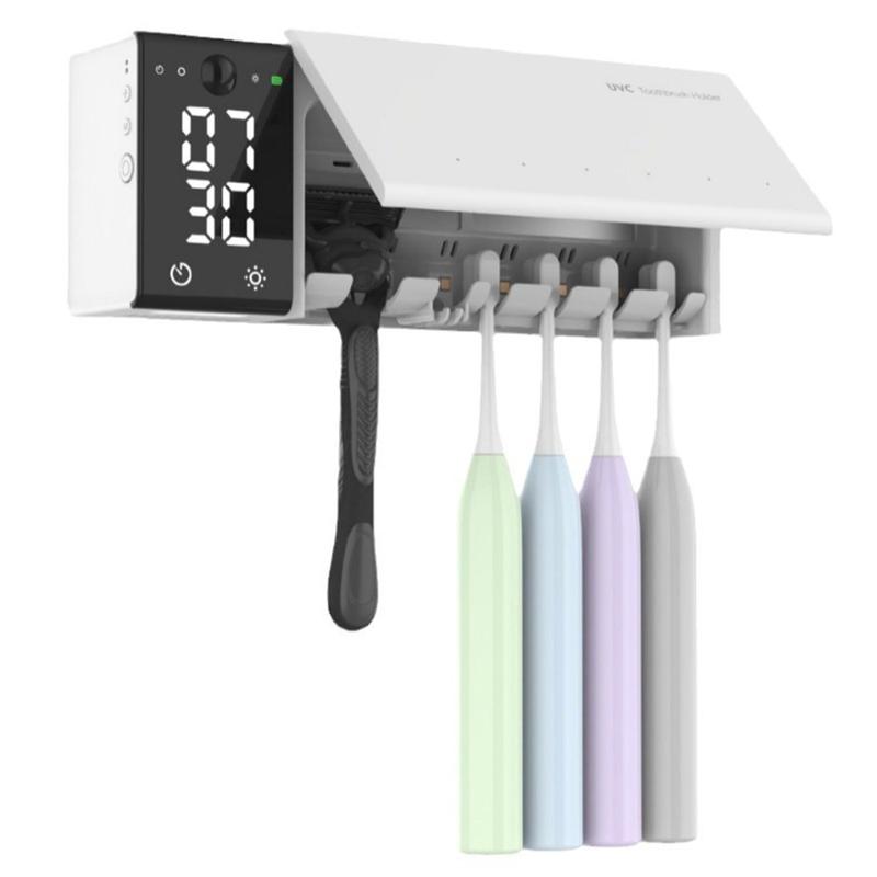 ES909 Smart UV Toothbrush Sanitizer - Wall-Mounted Drying & Sterilization Holder with LED Clock, Timer & No-Drill Installation
