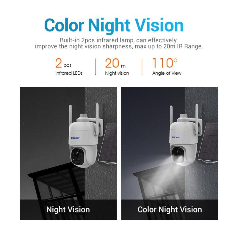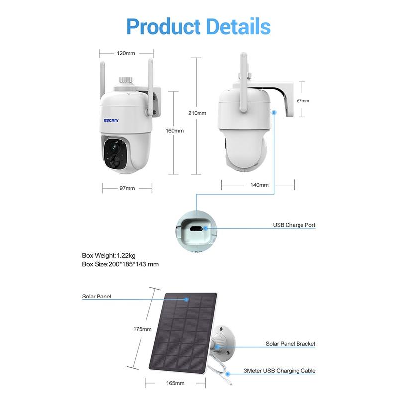 ESCAM G24 H.265 3MP Full HD AI Identifikujte kameru se solárním panelem PIR Alarm WiFi kamera Vestavěná baterie
