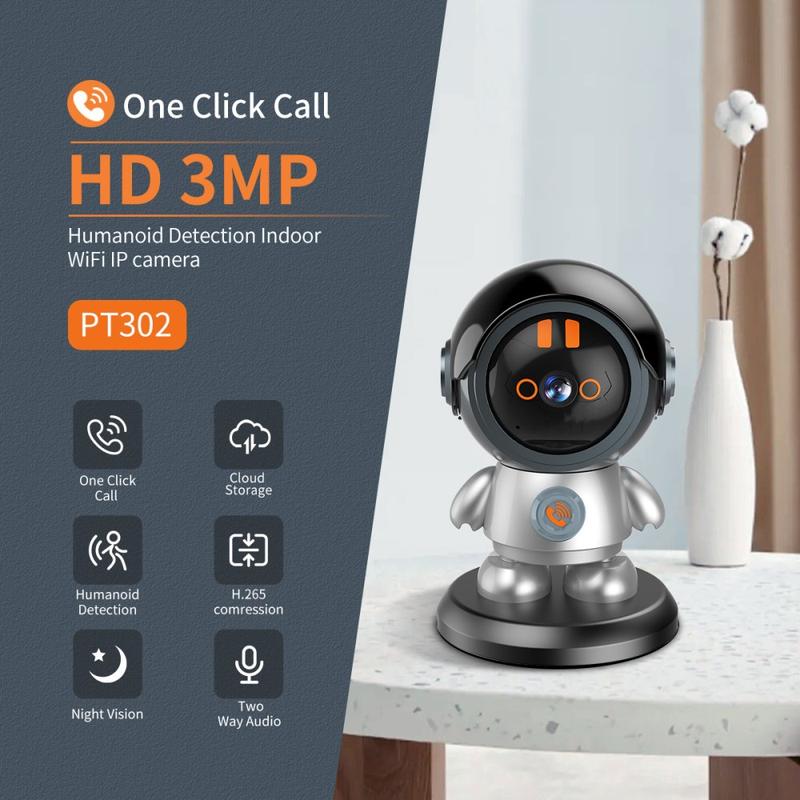 A rotating watchtower, an intercom, and an alarm siren all fit into a palm sized shell. The PT302 gives you crisp 1296P video, instant phone calls from the camera button, and pan tilt control that sweeps almost the full room.