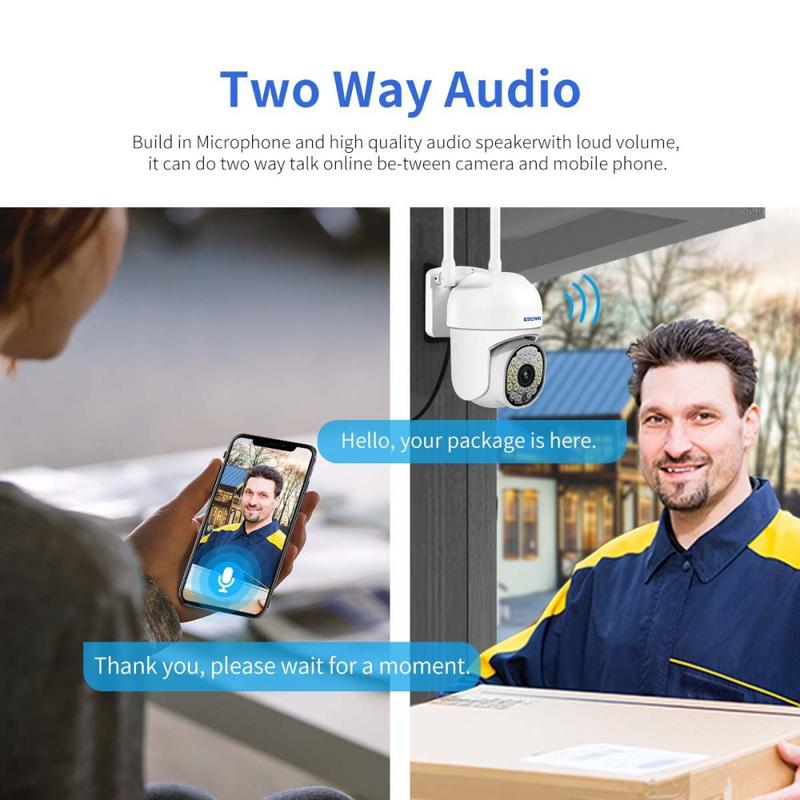- Two-Way Audio - Built-in mic and speaker enable real-time communication for enhanced security.