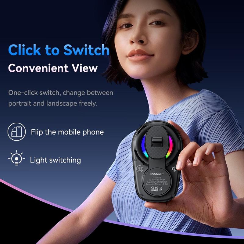 Keep your phone charged, visible and firmly in place with the ESSAGER 15W magnetic wireless car charger. Designed for drivers who want a cleaner and more convenient setup, this air vent mount combines fast wireless charging, strong magnetic hold and active cooling in one compact accessory. The built-in RGB light adds a modern touch, while the 90 rotation makes it easy to switch between portrait and landscape view for navigation, calls or music control.