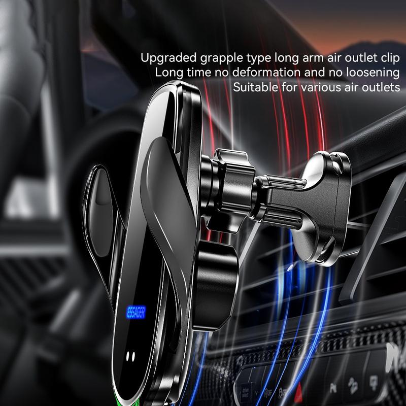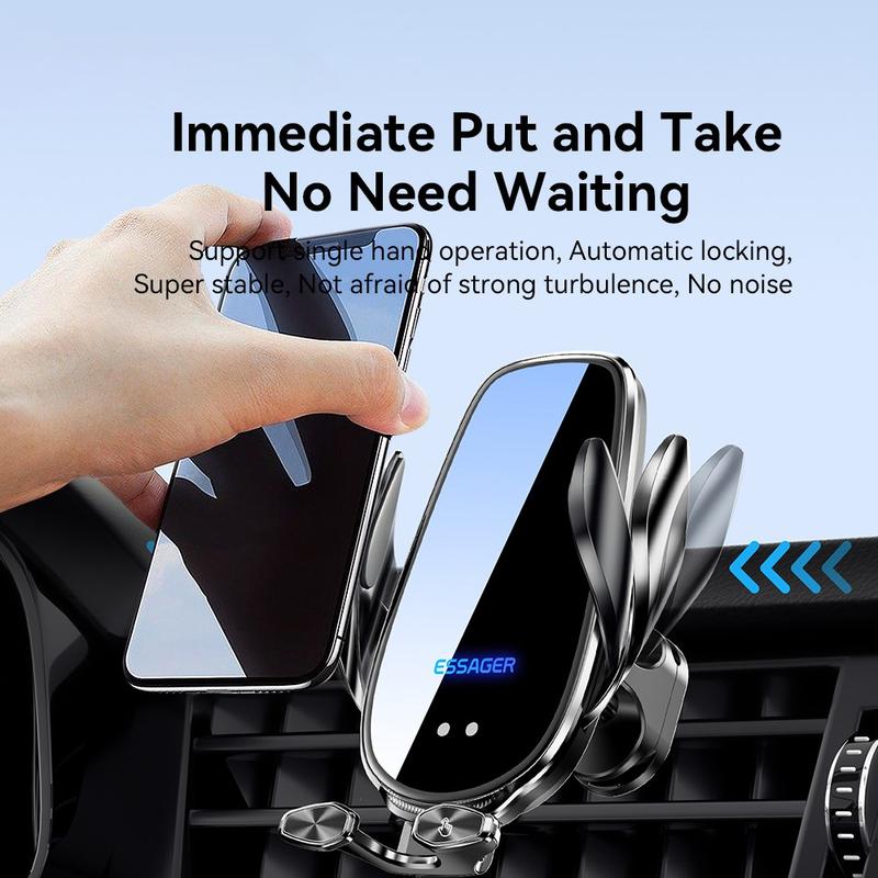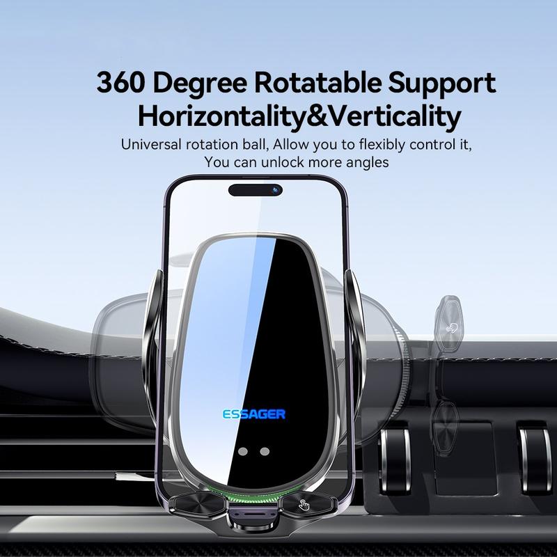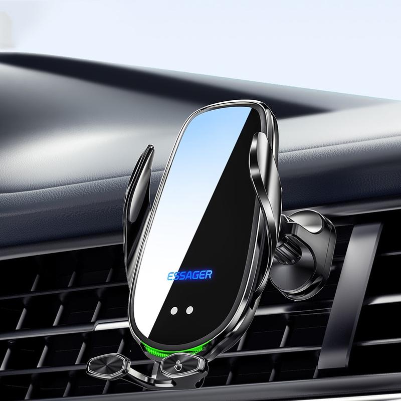 ESSAGER 15W inteligentní bezdrátová nabíječka do auta Držák telefonu do vozidla Nabíječka do ventilace Držák telefonu s okolním světlem