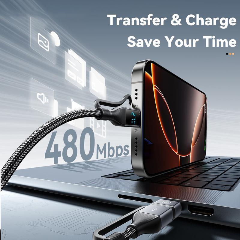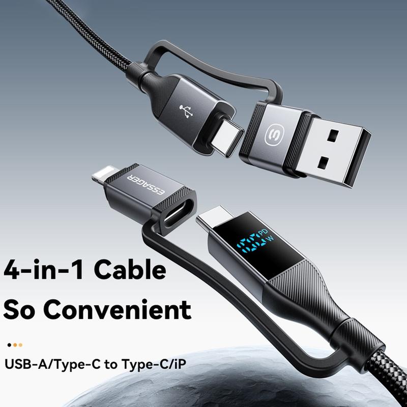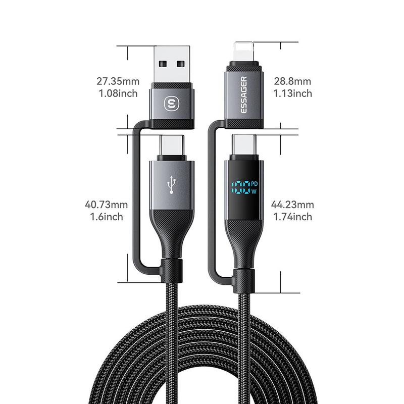 Essager 4-in-1 100W Fast-Charge Cable with Power Display – 2m, 480Mbps