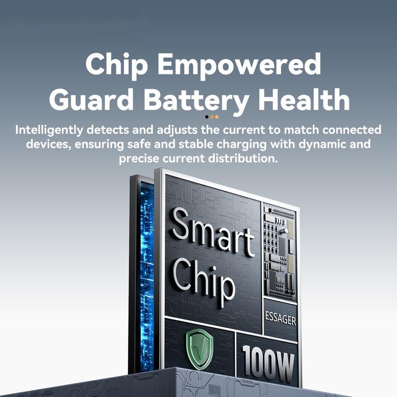 Most multi-tips max out at 15–20 W; Essager’s E-marker plus 5-amp core handles the full 100W PD envelope. The live display removes guesswork, and the reinforced braid shrugs off suitcase twists that kill cheap PVC leads.