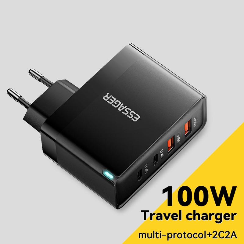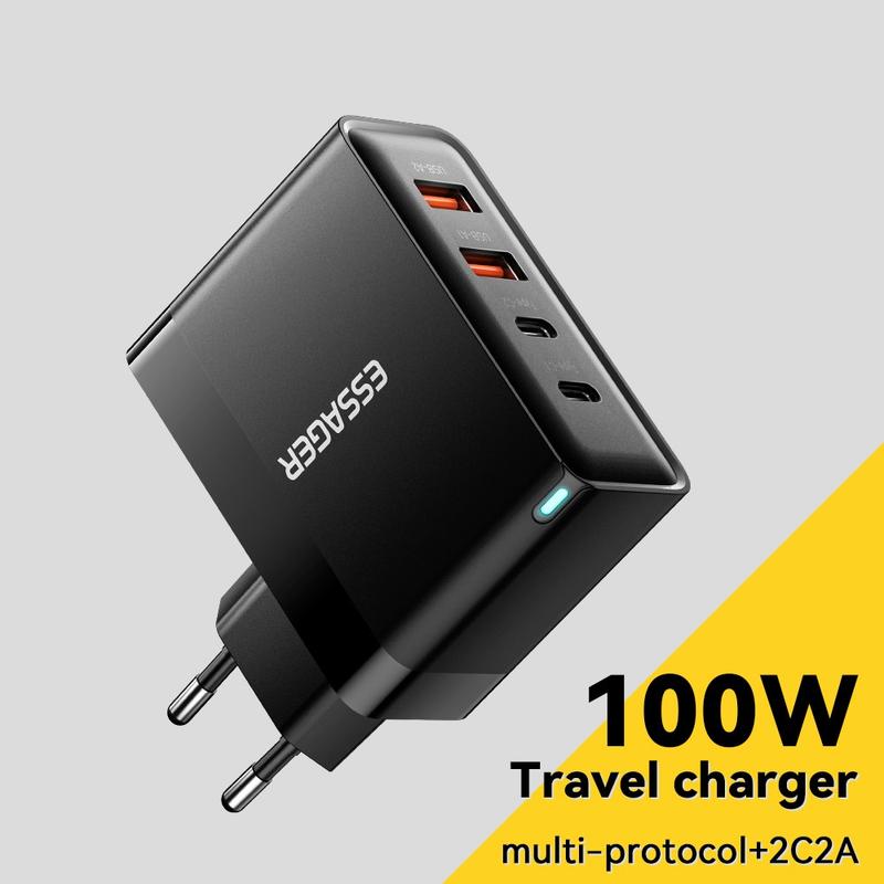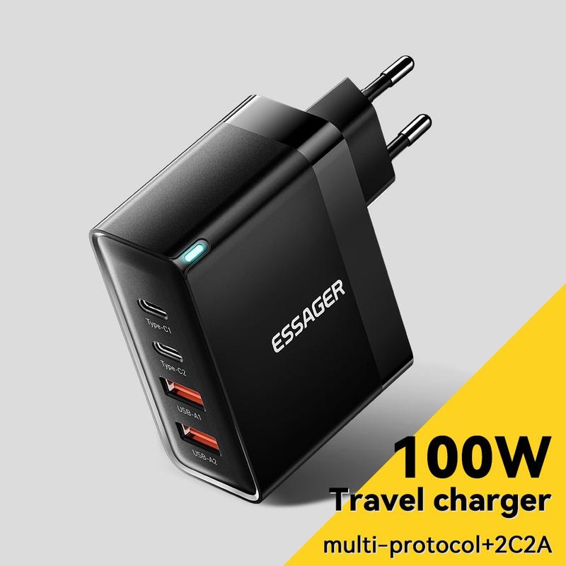 Power up all your devices efficiently with the Essager ES-CD37 100W Quick Charger Adapter, a multi-port charging station designed for fast, safe, and simultaneous charging. Equipped with 2 USB-C and 2 USB-A ports, this high-power charger supports multiple charging protocols and is perfect for home, office, and travel use. With universal voltage compatibility (100-240V), it ensures global usability, making it a must-have for tech users.