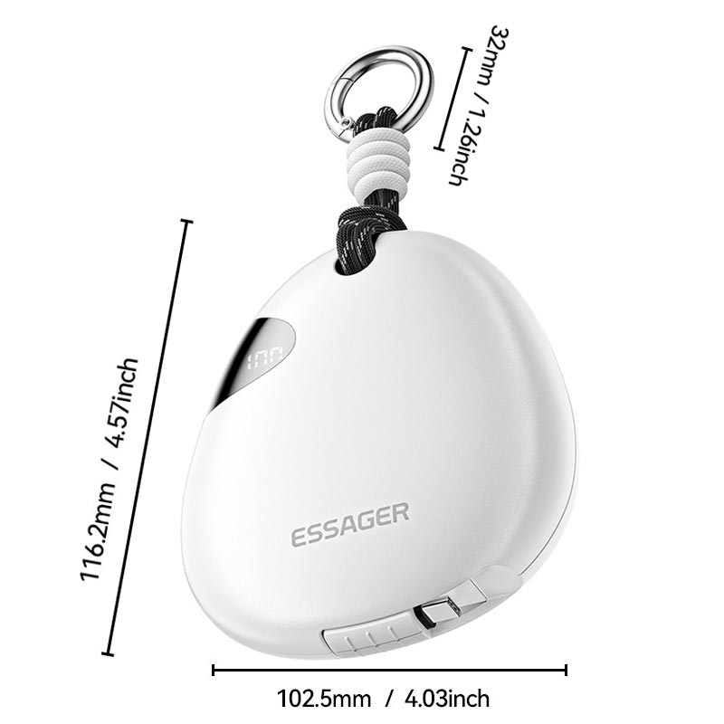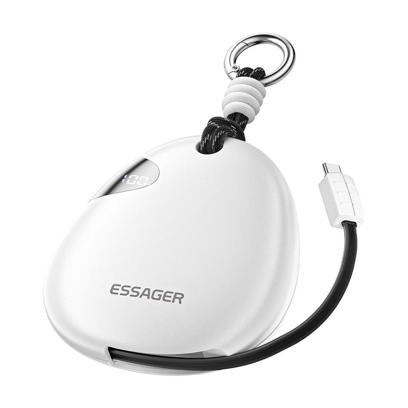 The ESSAGER 10000mAh Fast Charging Power Bank offers reliable, on-the-go power with a built-in retractable 70cm Type-C cable. Designed for travel, commuting and outdoor use, it delivers up to 22.5W fast charging while remaining compact, lightweight and easy to carry thanks to its integrated carabiner clip.