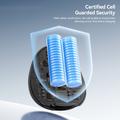 A built-in intelligent safety chip provides optimized charging while protecting against over-current, over-voltage, short-circuiting and overheating.