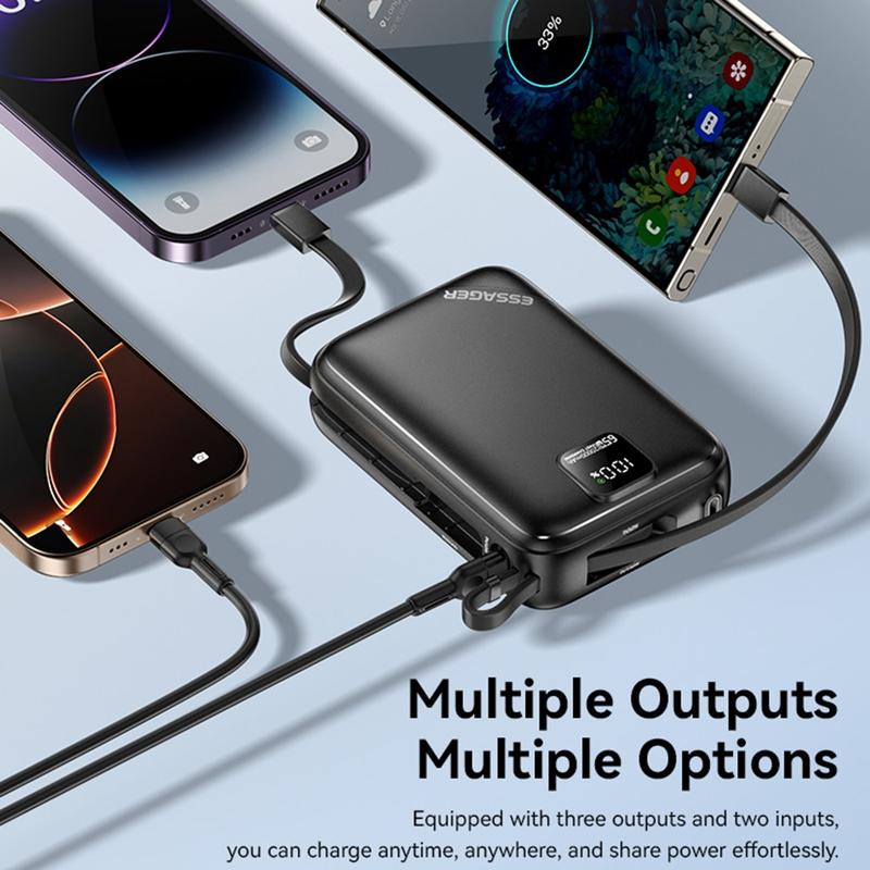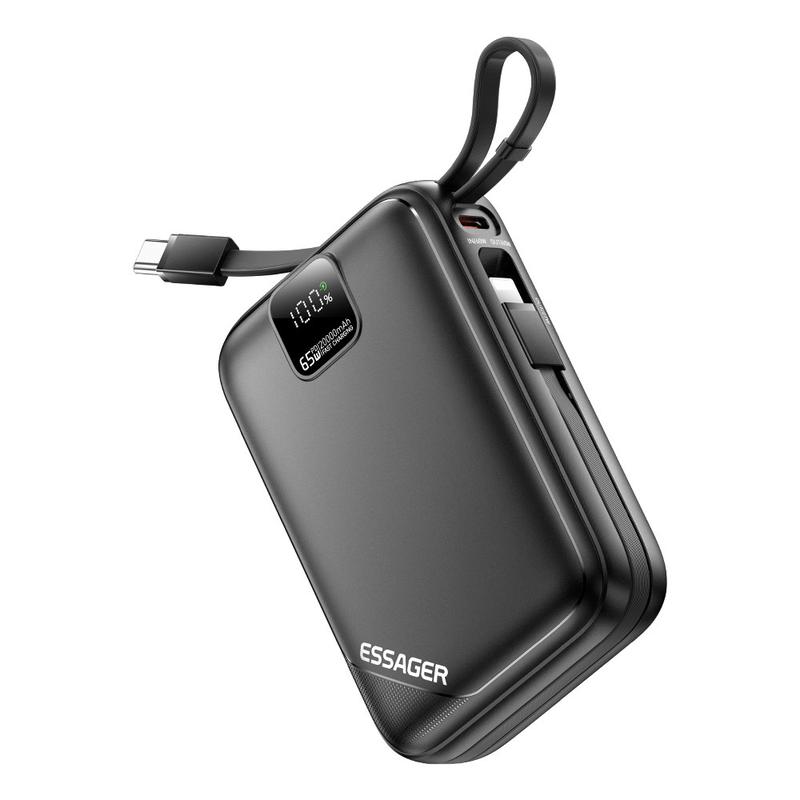 The ESSAGER PD 65W power bank combines rapid laptop-level charging, dual built-in cables, high capacity, and smart LED monitoring—making it the ultimate all-in-one charging solution for travel, work, and everyday carry.