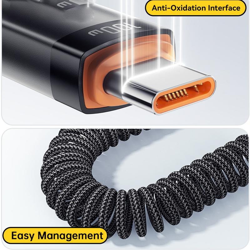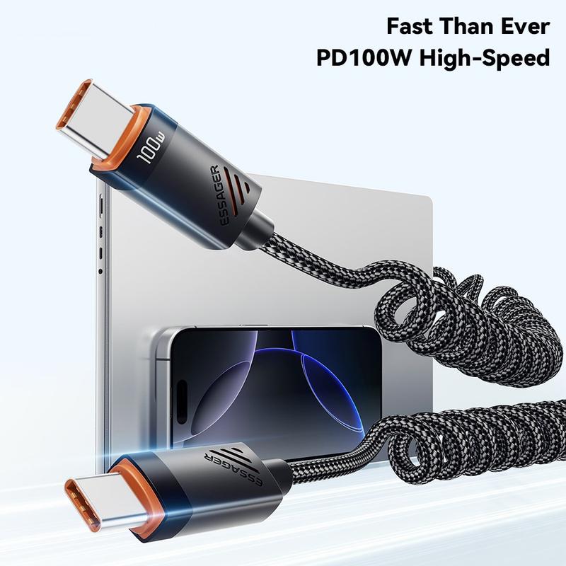 Charge and sync your devices more conveniently with the Essager Spring USB-C to USB-C cable. Designed with a flexible coiled spring structure, this cable stretches when needed and retracts neatly for easier storage, helping reduce cable clutter on desks, in cars, or inside travel bags. With support for up to 60W Power Delivery charging, it can quickly power compatible smartphones, tablets, and USB-C laptops while also supporting reliable data transfer.