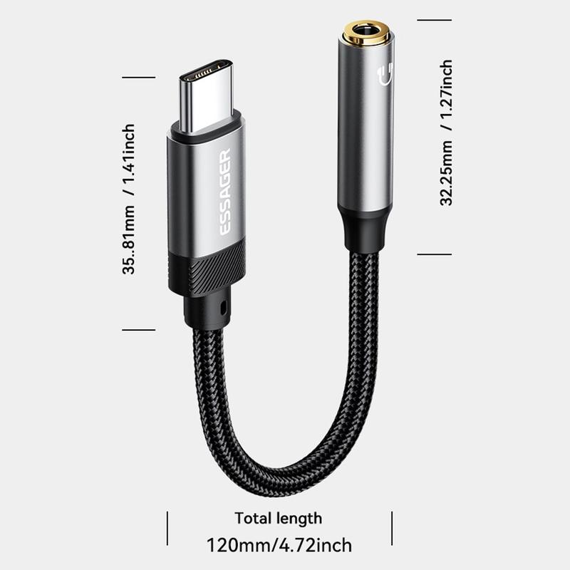 Essager Type-C to 3.5mm Audio Adapter - Hi-Fi Sound with DAC Chip