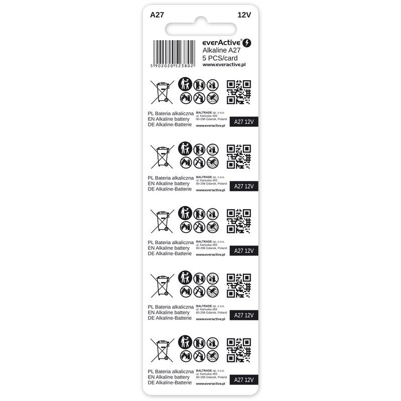 EverActive A27/L828 Alkaline Batteries 12V - 5 Pcs.