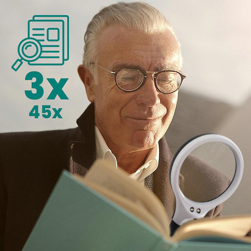 The everActive MG-01 Magnifying Glass with LED backlight is a versatile tool designed for reading, precision work, and professional use. Equipped with two lenses (3× for general use and 45× for micro-details) and three bright LEDs, it ensures excellent visibility in any lighting condition. Lightweight, portable, and battery-powered, it’s the perfect companion for seniors, hobbyists, collectors, and technicians.