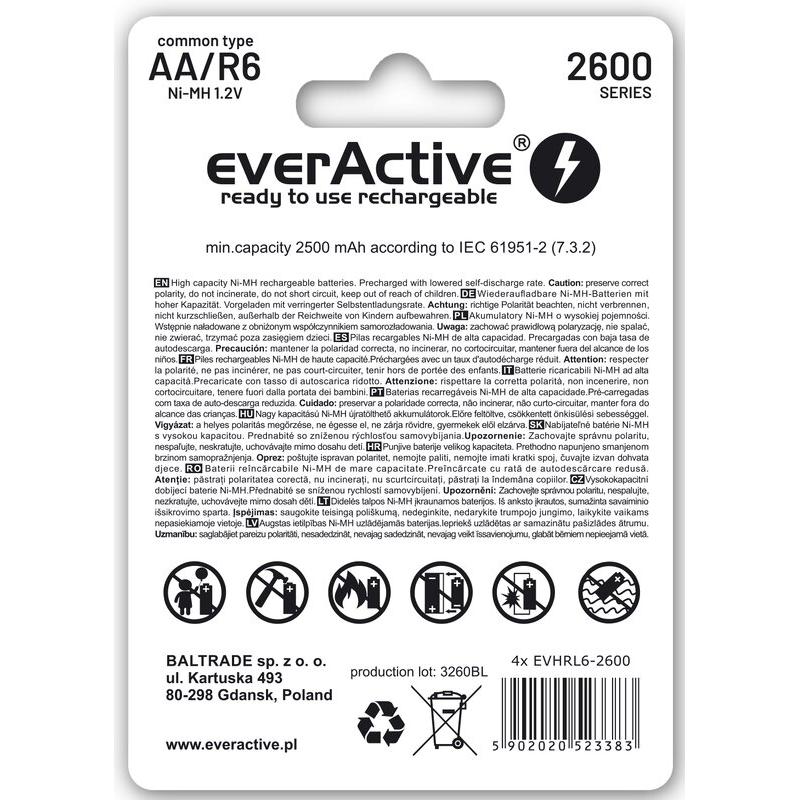 EverActive Professional Line EVHRL6-2600 Ni-MH R6/AA Rechargeable Batteries 2600mAh - 4 Pcs.