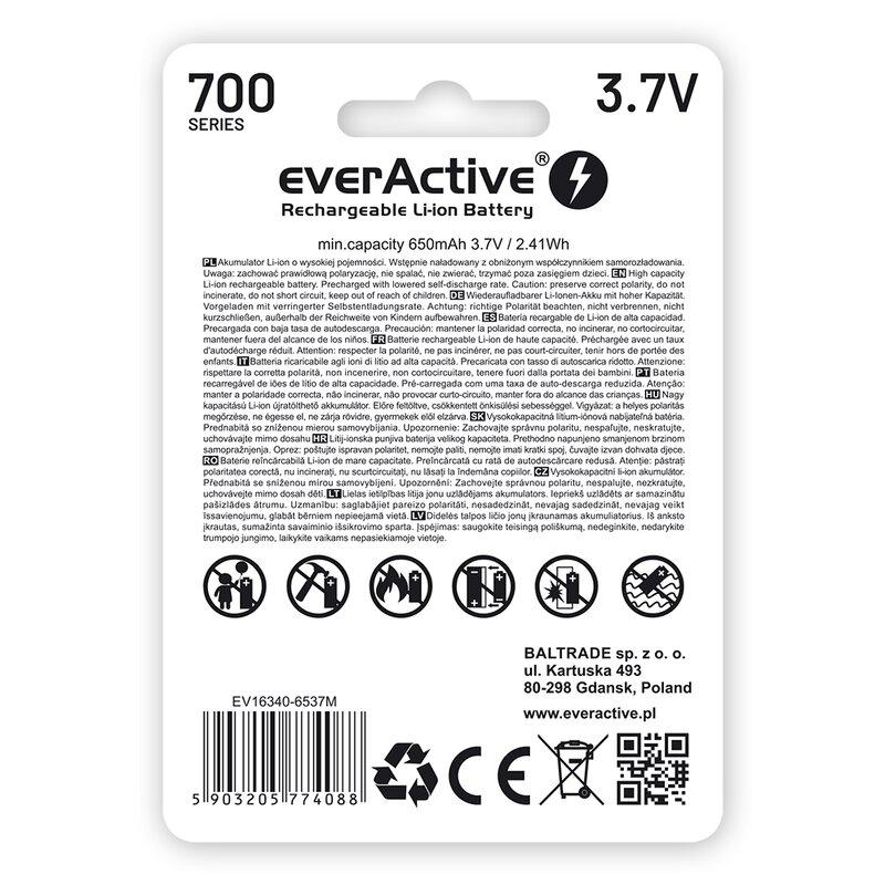 EverActive RCR123/16340 Rechargeable Battery with microUSB port 700mAh