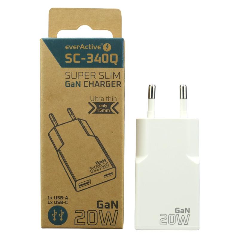 everActive SC-340Q GaN Super Slim 20W Wall Charger with USB QC3.0 & USB-C PD Ports