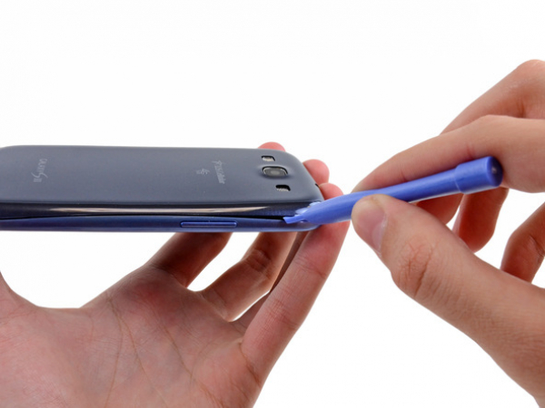 • On the top part of the unit, in the notch where the rear case and the rest of the phone connect, insert the plastic or any other slim tool.