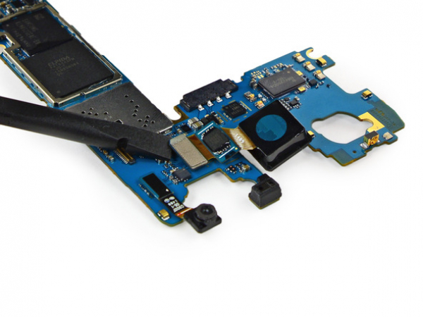 • Use a pair of tweezers to take the rear-facing camera off the motherboard.