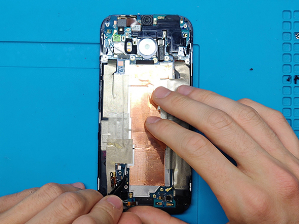 Remove the SIM card tray assembly from the HTC One M8.