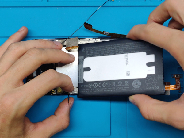 After a successfull test, unplug the battery to continue with the repair.
