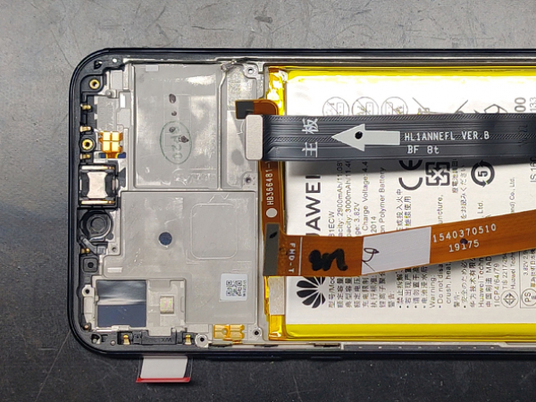 - Power off your Huawei before beginning disassembly. - Insert the thin metal opening tool between the battery cover and frame. - Flip the cover carefully to the right side of the phone. - The fingerprint ID sensor cable is attached to the back cover.