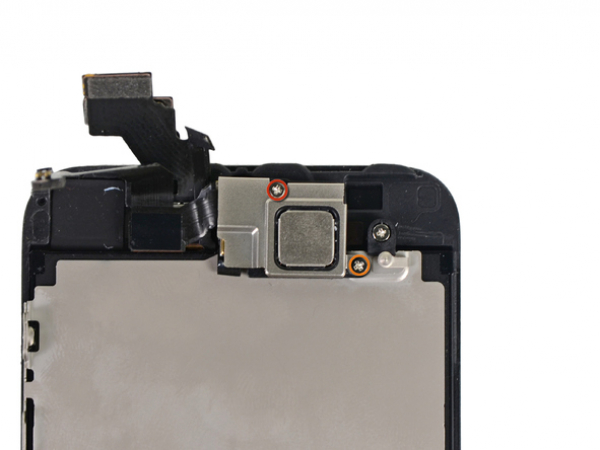 The two screws securing the front-facing camera bracket to the display assembly need to be removed.