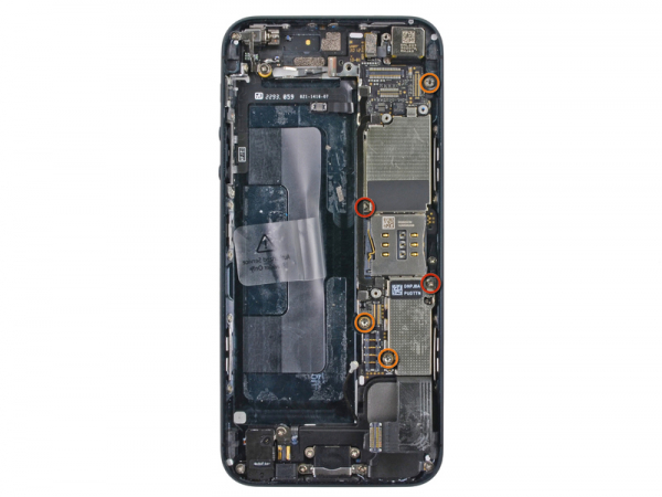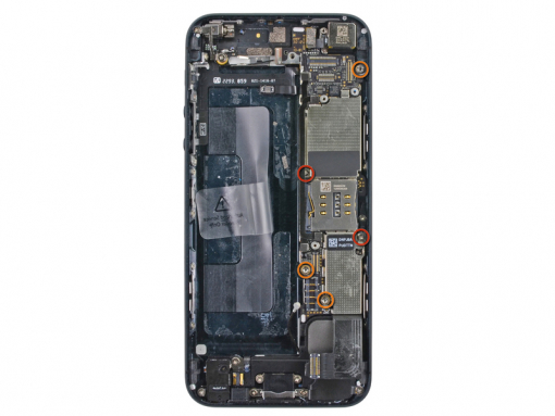 Remove the following screws attaching the logic board to the rear case: