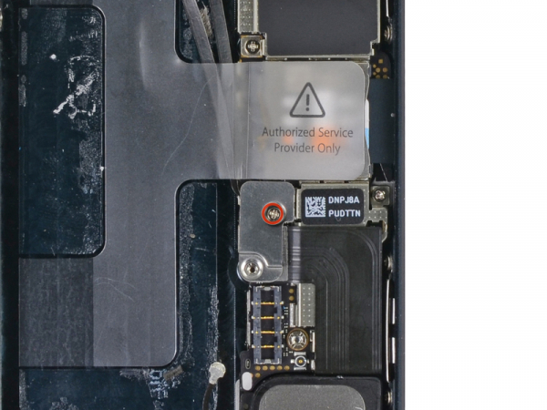 Pry the cellular data antenna cable connector up from its socket on the logic board, just above the speaker enclosure, using the tip of a spudger.