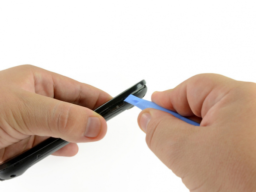 In order to release the clips on the right side, you need to slide the plastic opening tool downwards along the edges of the Nexus S.