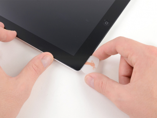 Upper right corner of the iPad contains a small gap in the iPad's adhesive ring, approximately 2.0 inches (~5 cm) from the top of the iPad. This is something you are going to exploit.